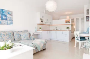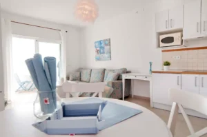 - Lavadora, frigorífico, microondas, cafetera, batidora, tostadora, menaje de cocina completo, plancha, tabla de planchar, TV de 32', equipo de música, aire acondicionado frío/calor
