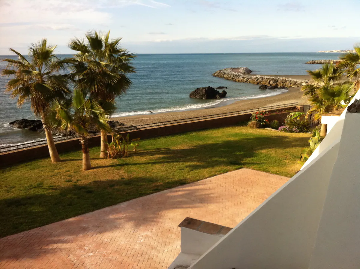 En primerísima línea. Desde el jardín se sale directamente a la playa. Apartamento totalmente equipado. Está en un pequeño residencial de 7 apartamentos.